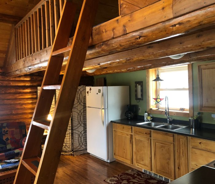Loft Bed: Queen-size mattress in an elevated loft reached by ladder — cozy and ideal for one or two guests