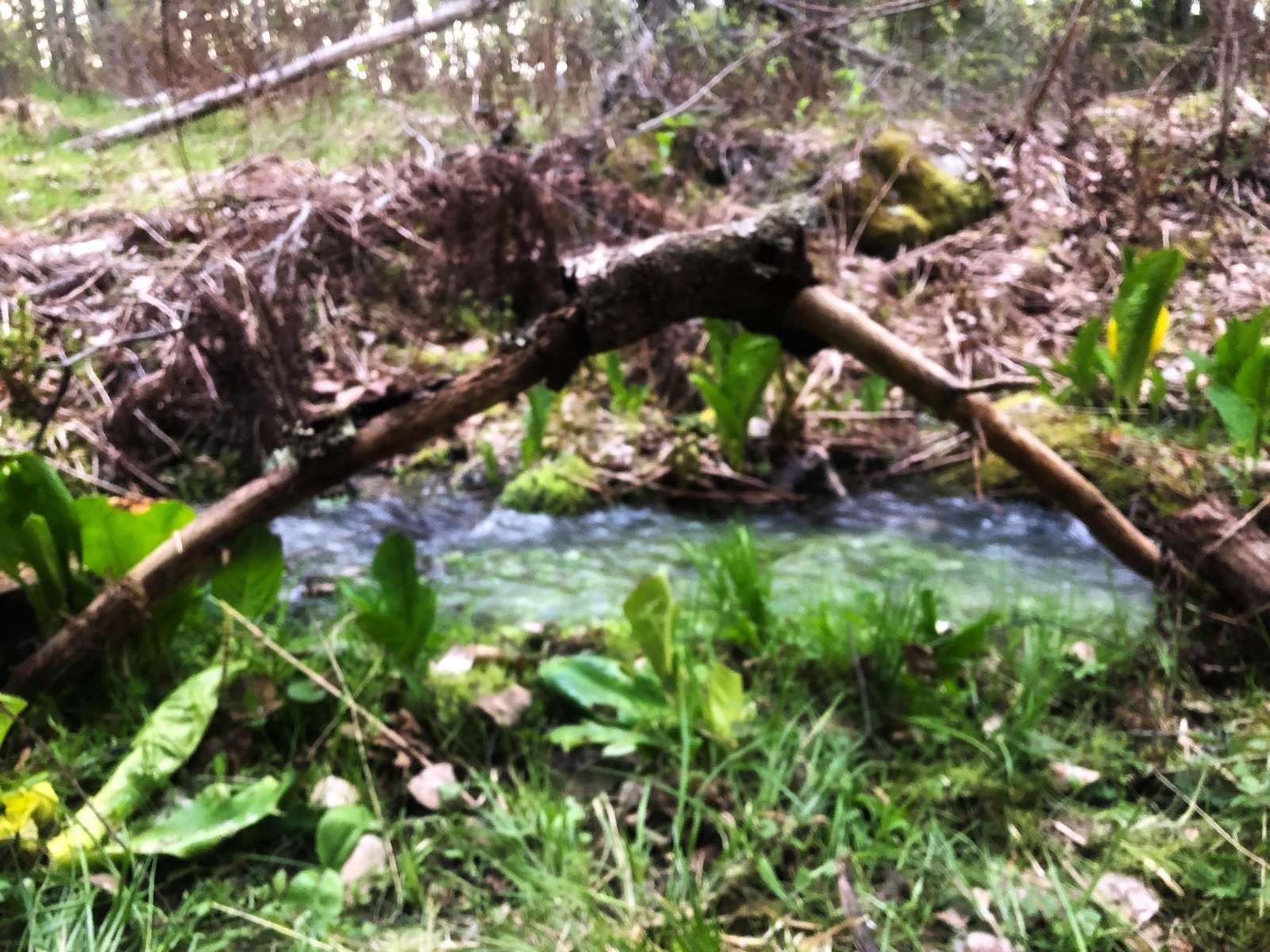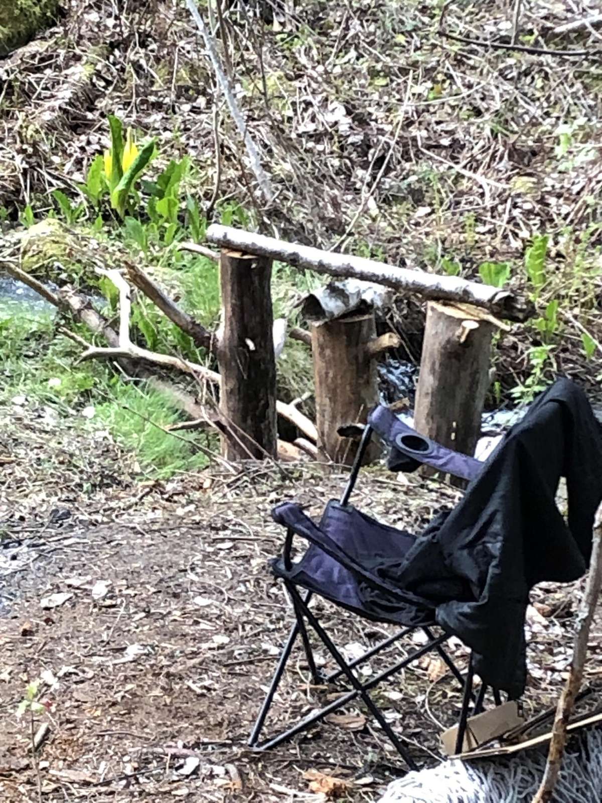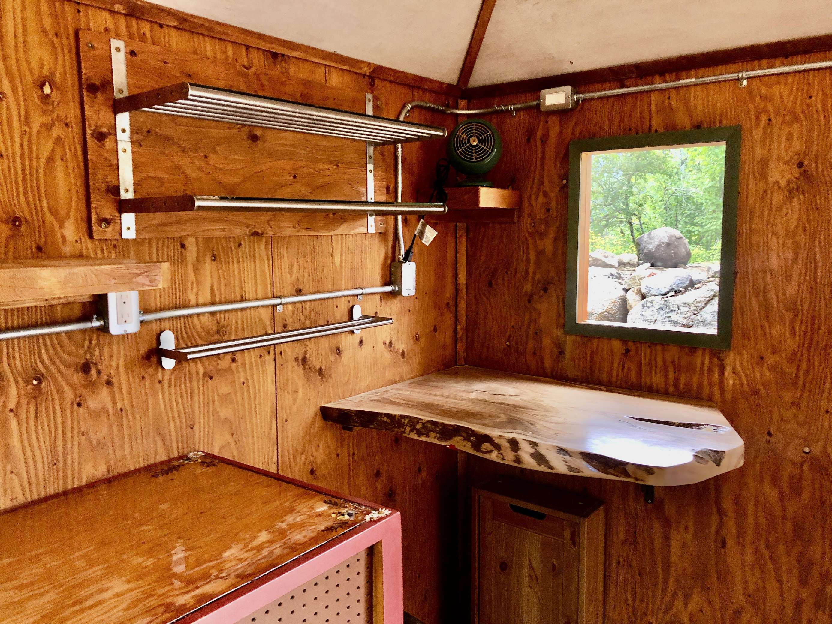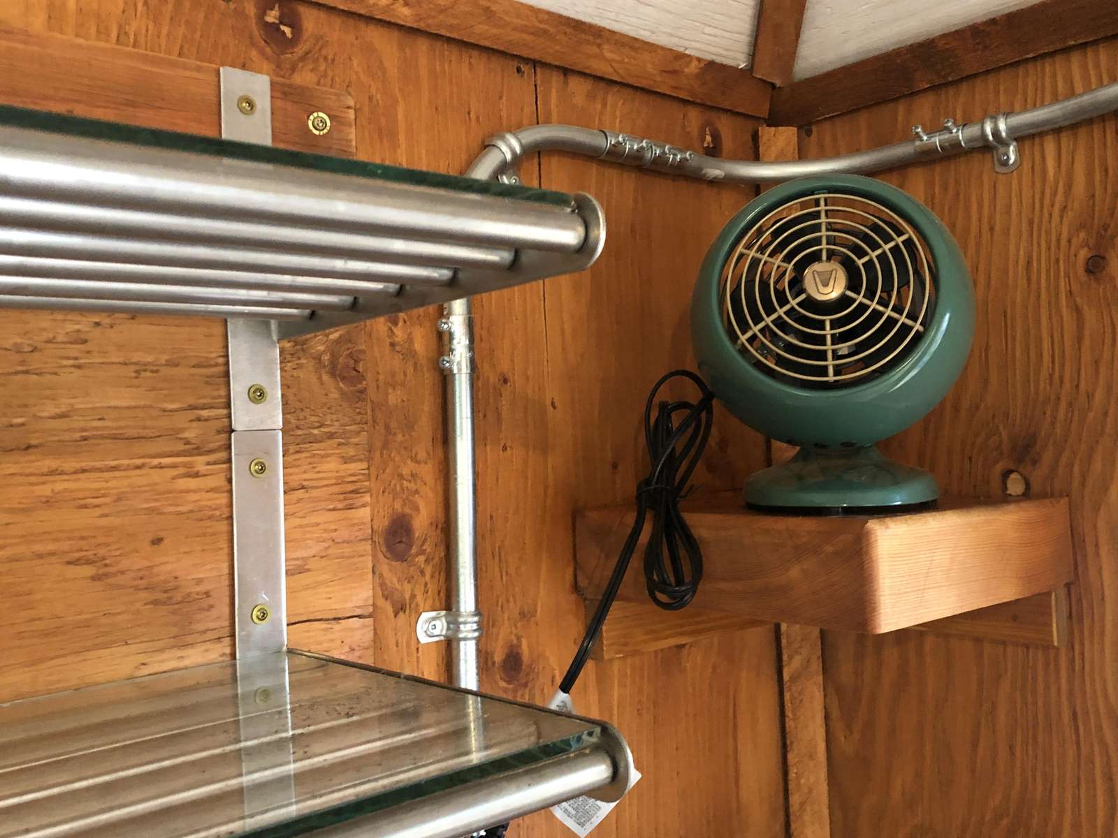 It has a shared three pc bath with hot running water, 2 flushing toilets, an outdoor shower, a fully equipped kitchen and a central firepit. There's a path to the forest that guests are welcome to visit and explore.