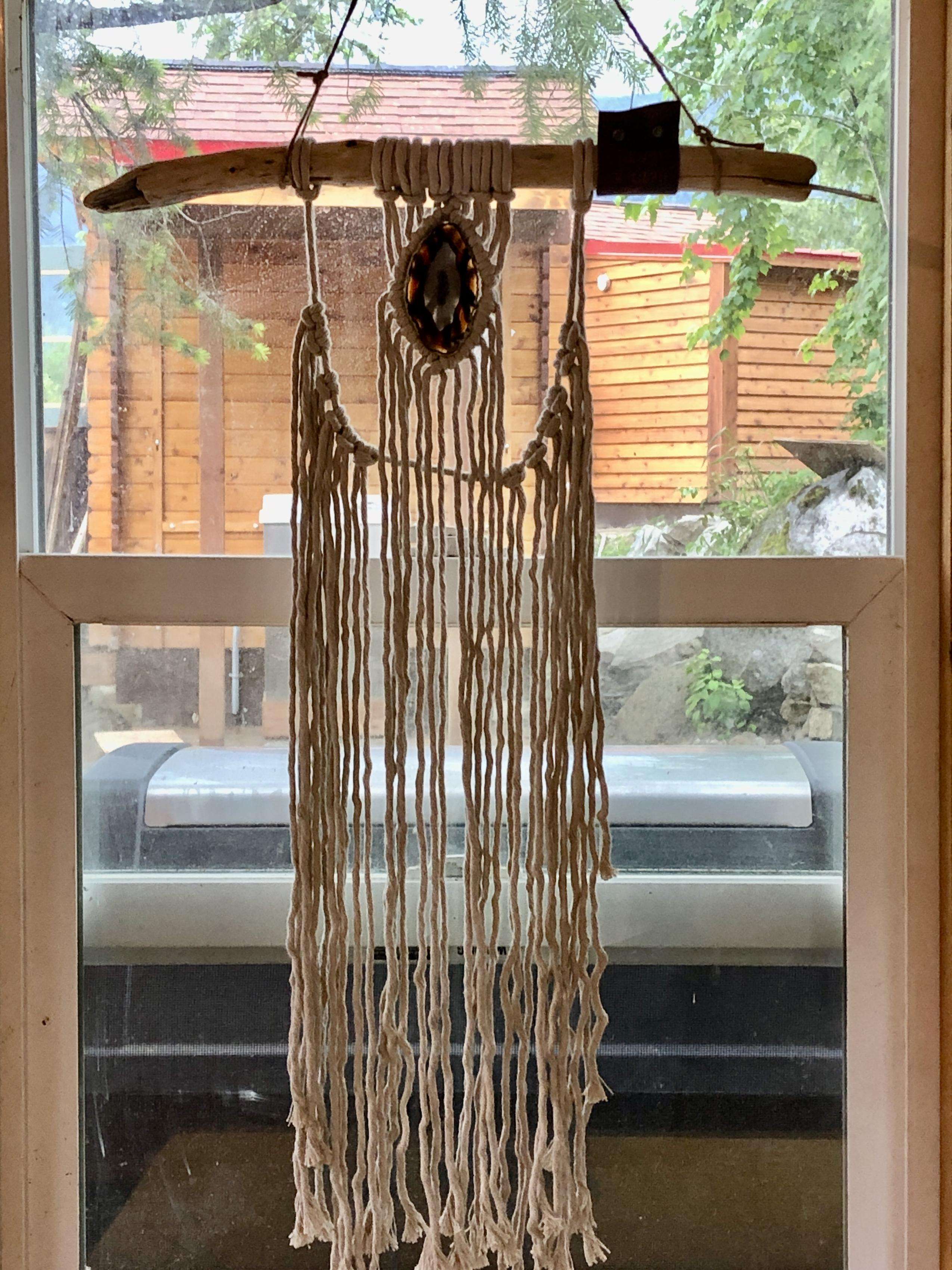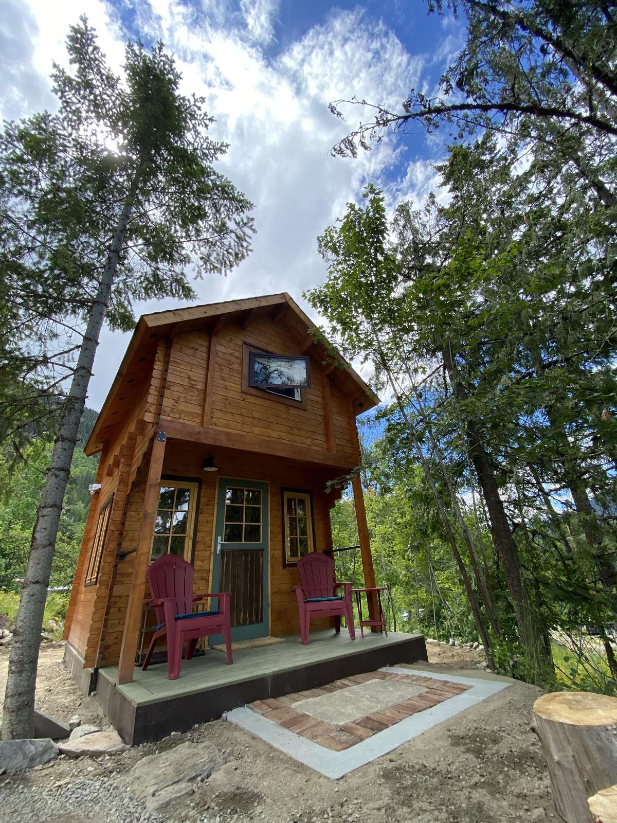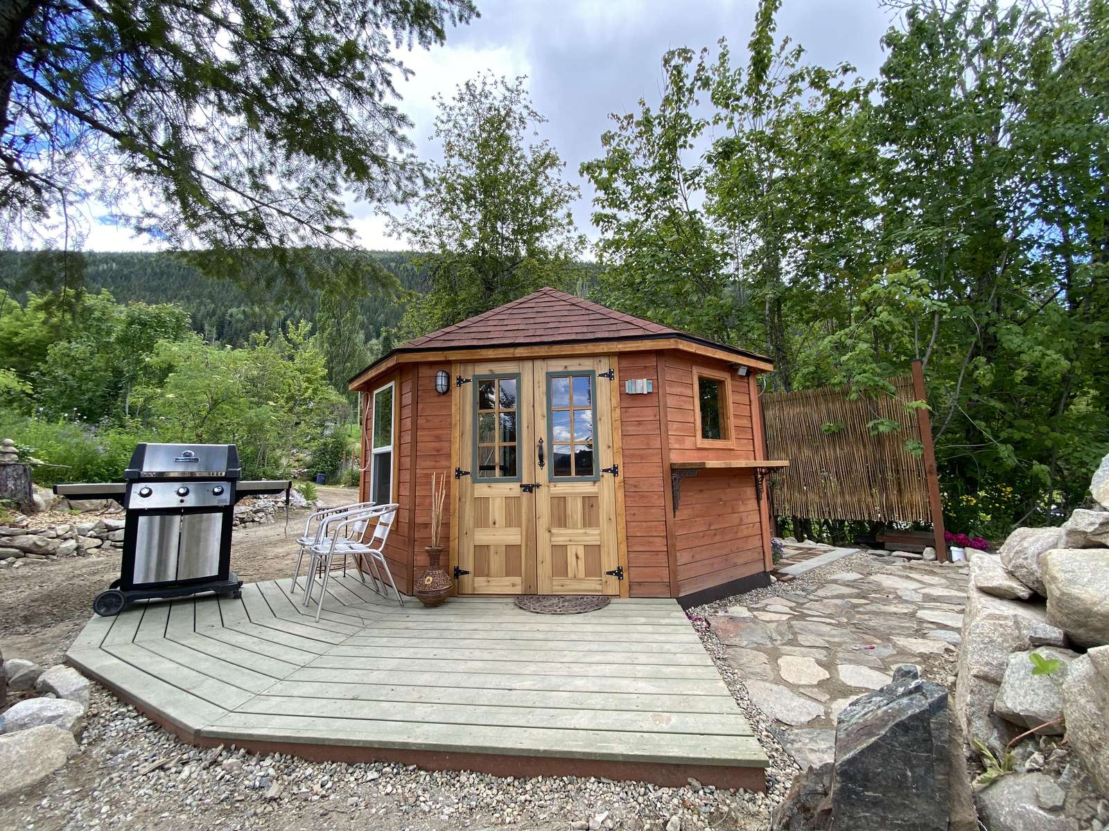 Escape to Boho Bungalow, a whimsical retreat nestled in Bunkieland's serene forest, offering breathtaking views of Kootenay Lake from its private deck. This eclectic, bohemian-inspired bungalow provides a peaceful getaway amidst nature's beauty.
