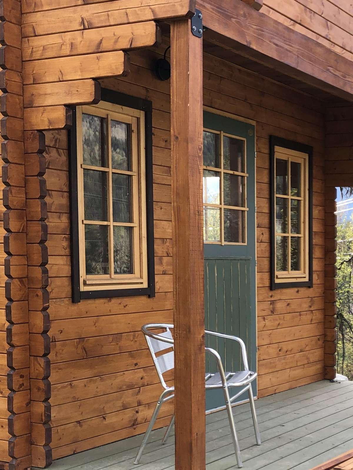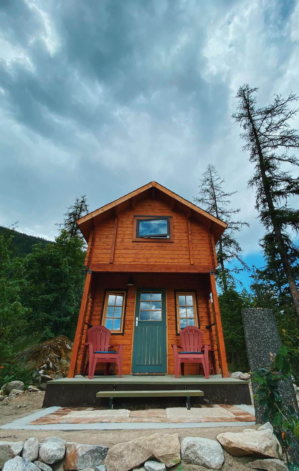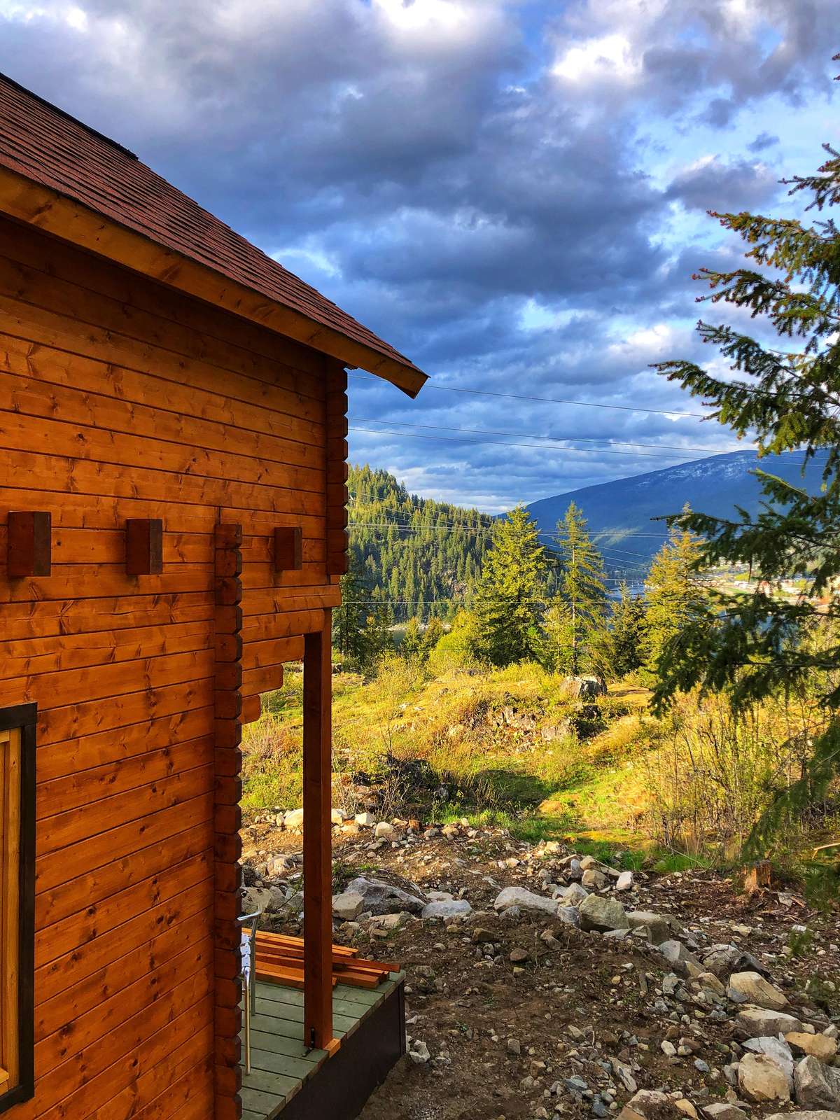 Boho Bungalow is a unique log cabin construction that blends into the rustic beauty of Nelson, BC, on the forest edge sitting at the top of a historic patch of BC Granite Rock.