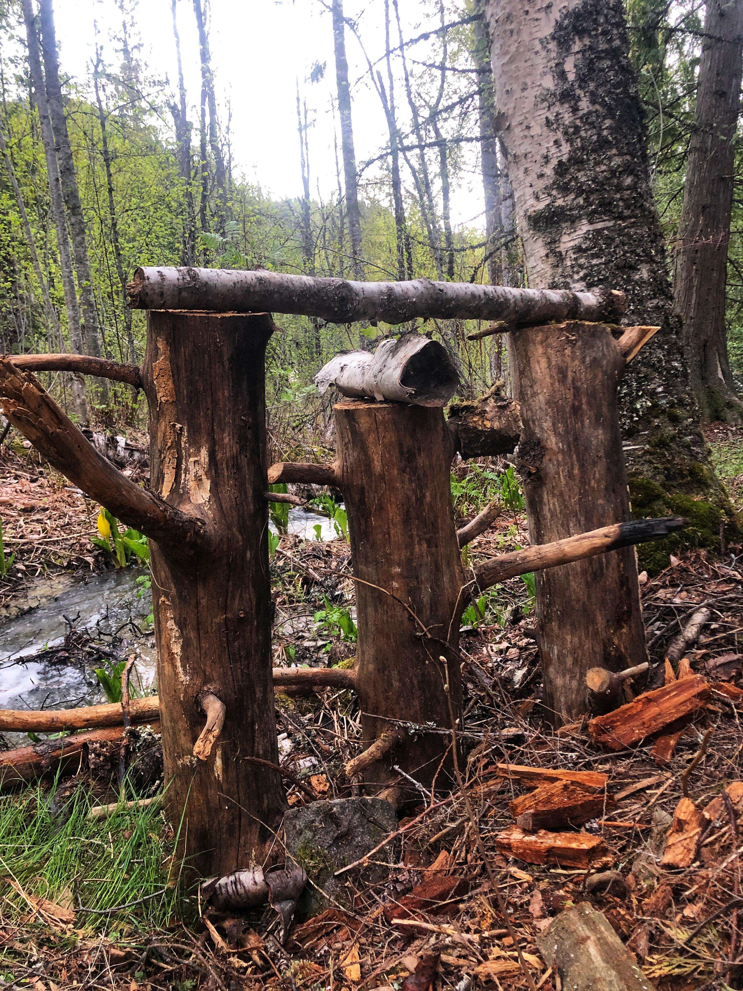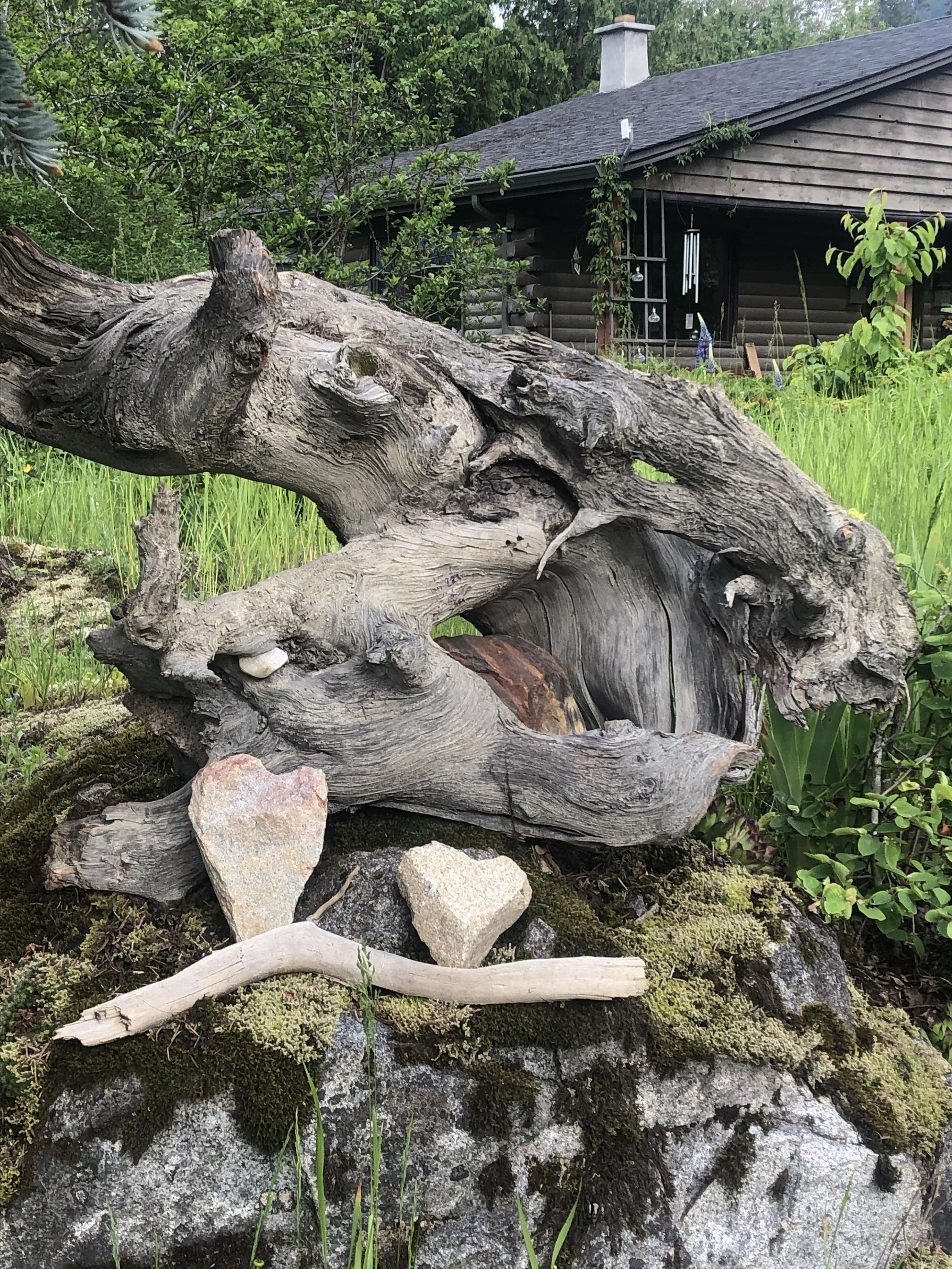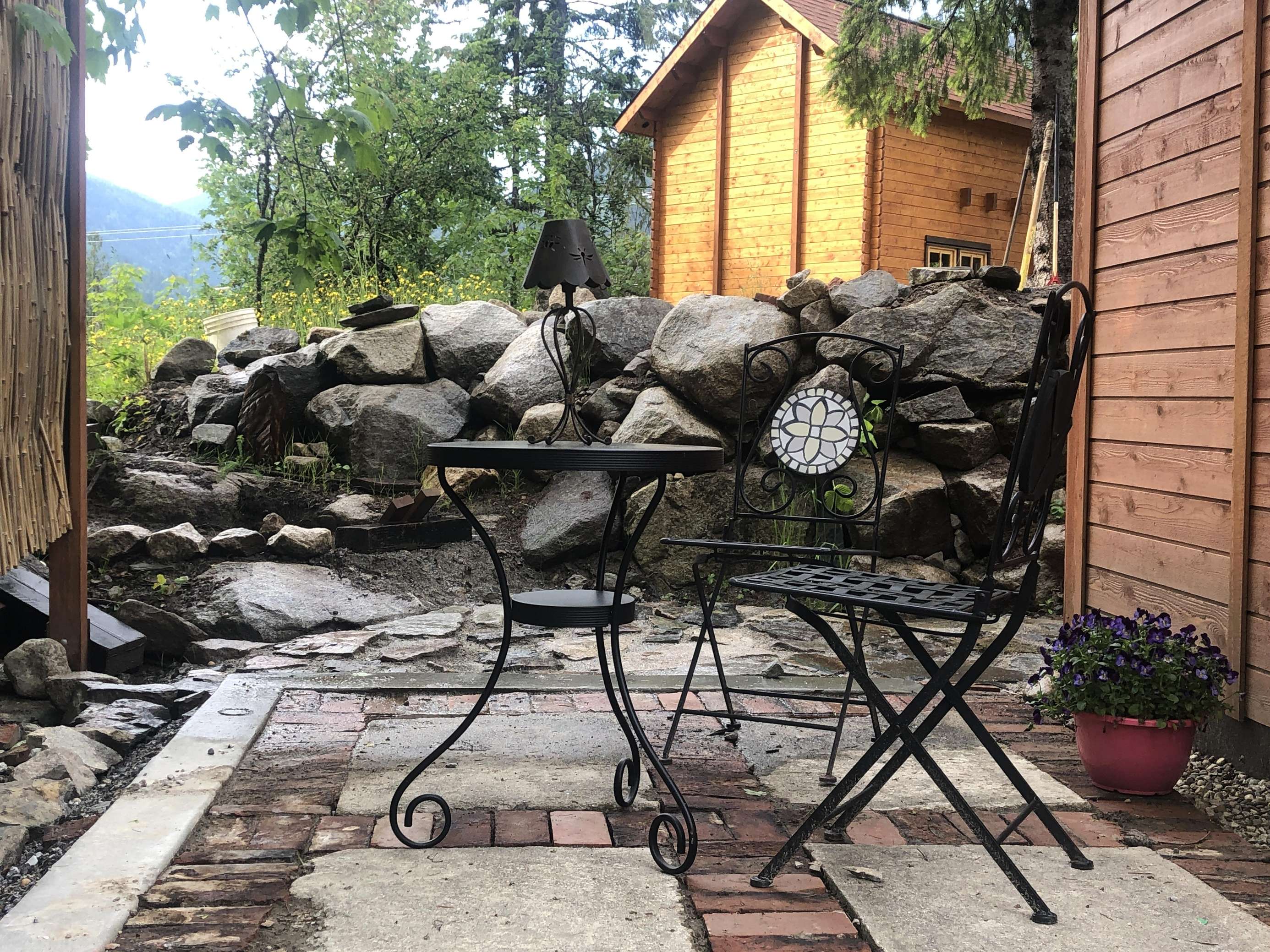 Boho Bungalow is a unique log cabin construction that blends into the rustic beauty of Nelson, BC, on the forest edge sitting at the top of a historic patch of BC Granite Rock.